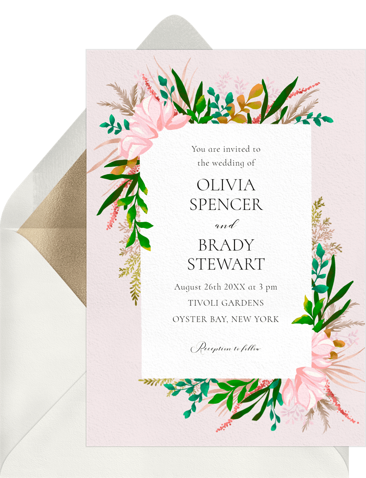 invitations romantic illustrated florals pink wedding Designs