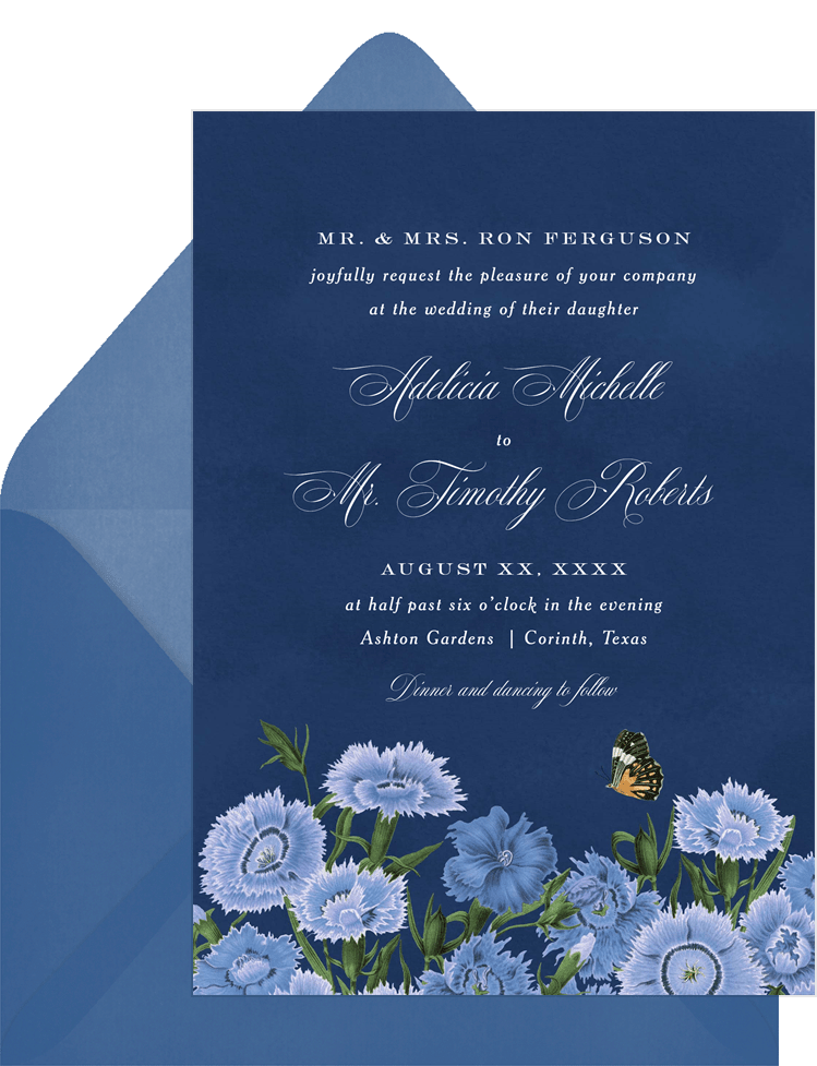 invitations romantic vintage bouquet blue wedding Designs