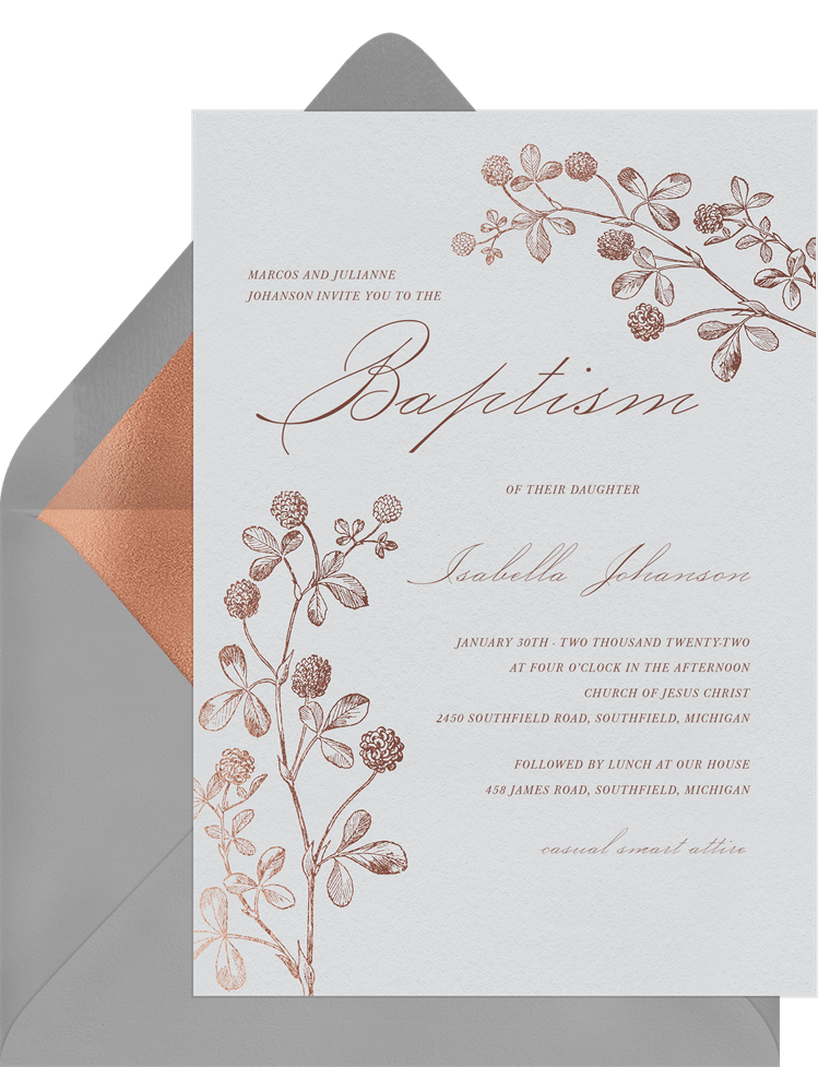 invitations rose gold clover grey baptism Designs