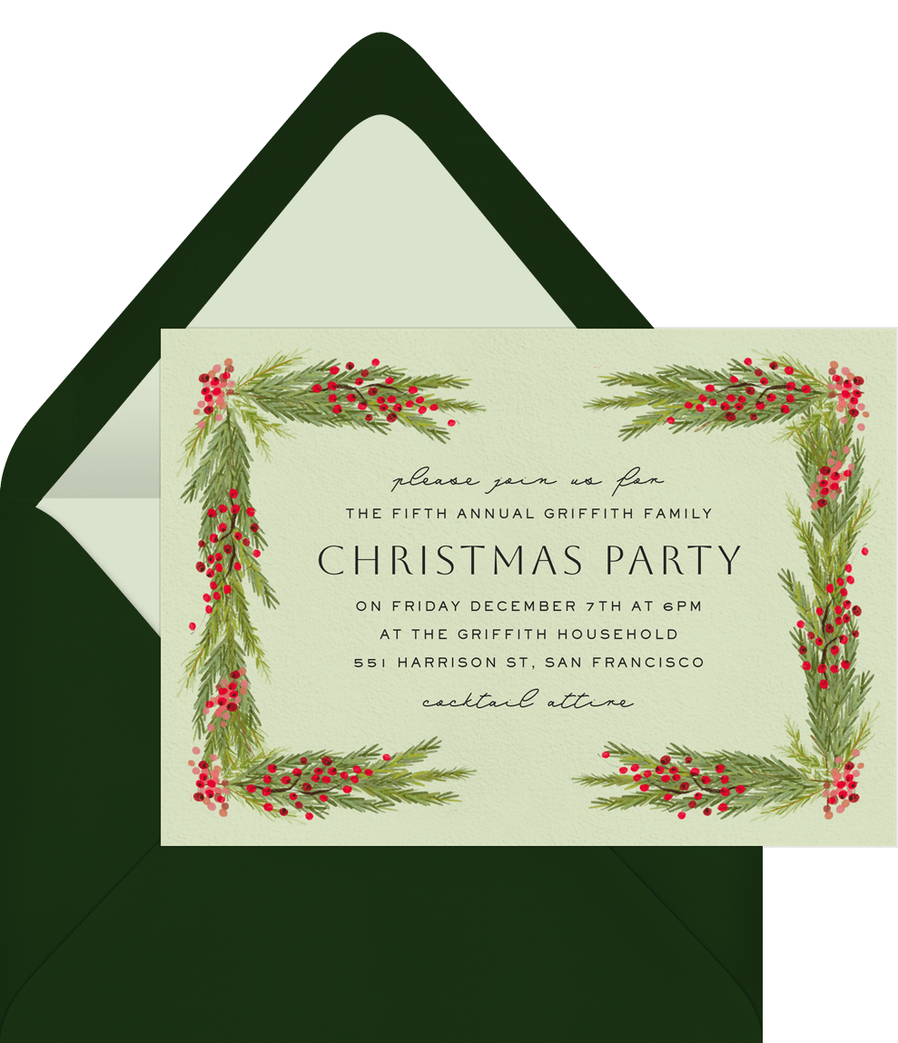 invitations rustic garland green christmas party Designs