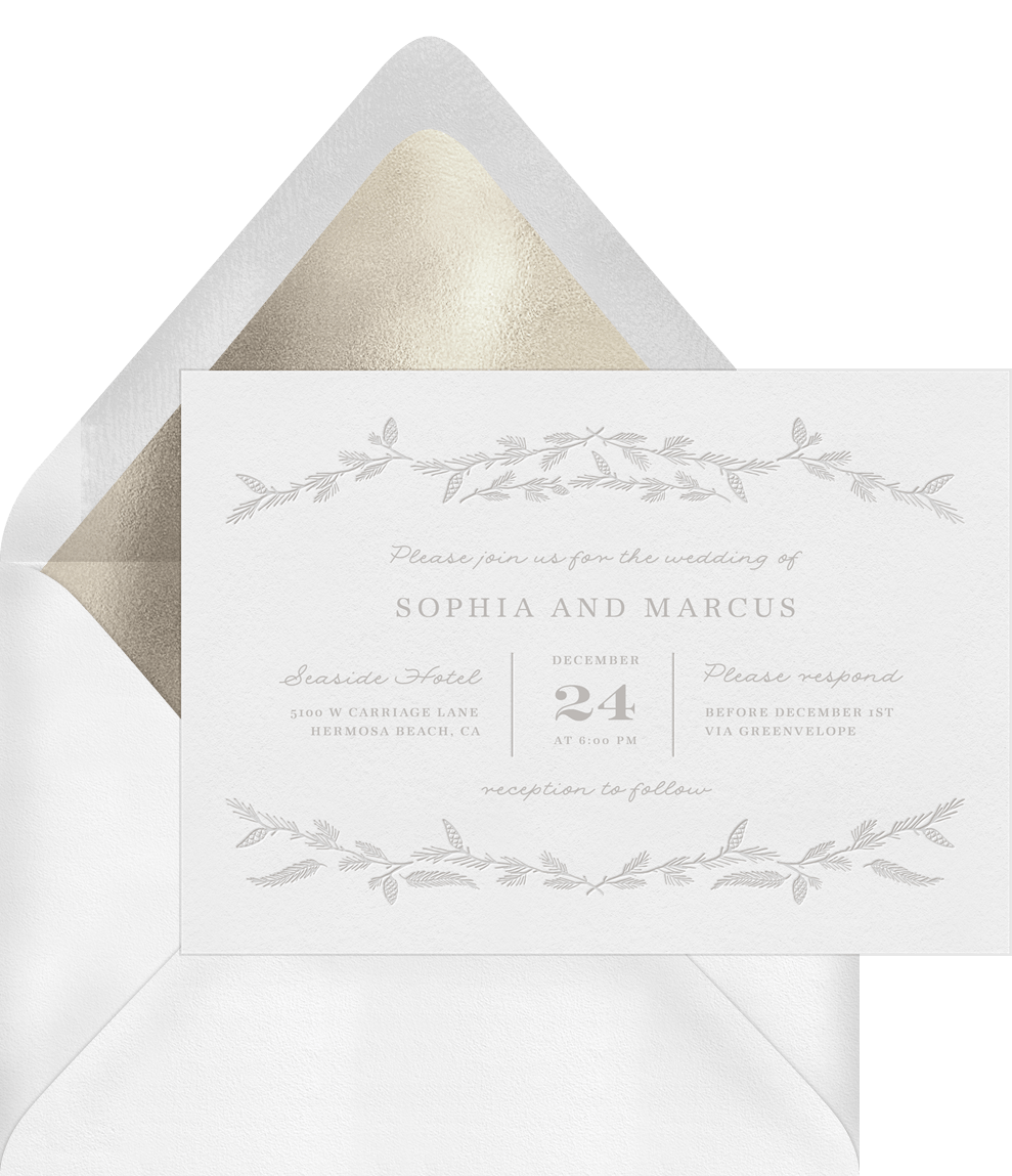 invitations rustic pine garlands white wedding Designs