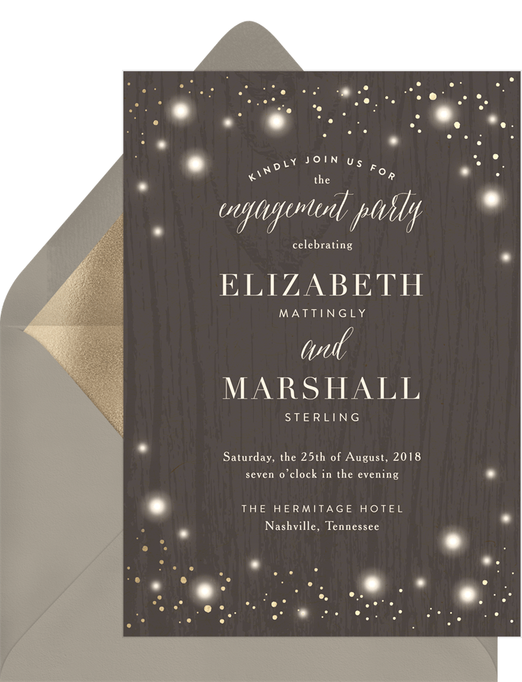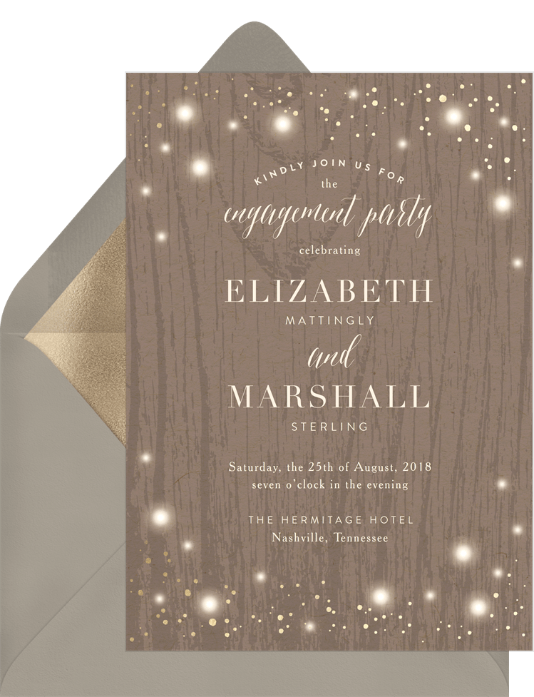 invitations rustic twinkle brown engagement party Designs