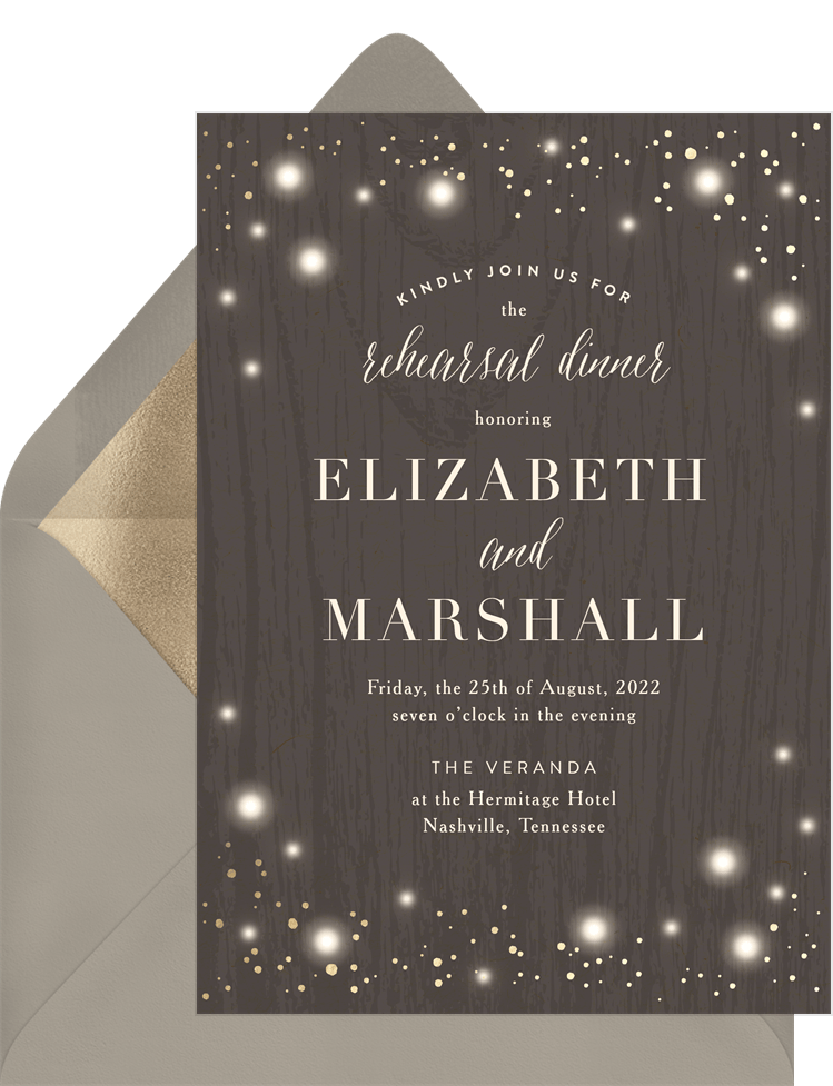 invitations rustic twinkle grey rehearsal dinner Designs