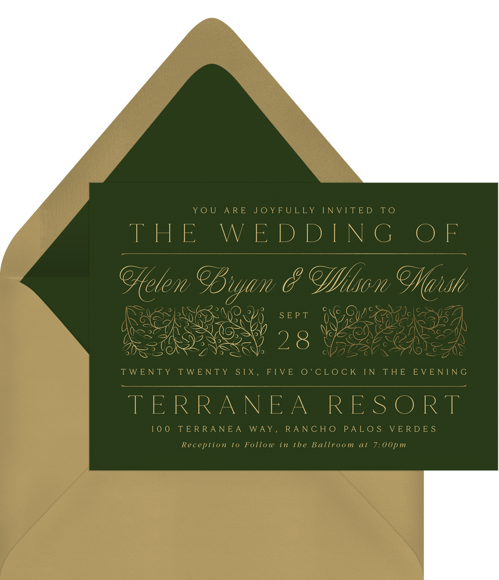 invitations scrolling vines green wedding Designs