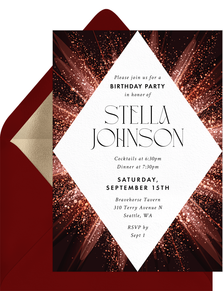 invitations shimmering deco diamond red adult birthday Designs