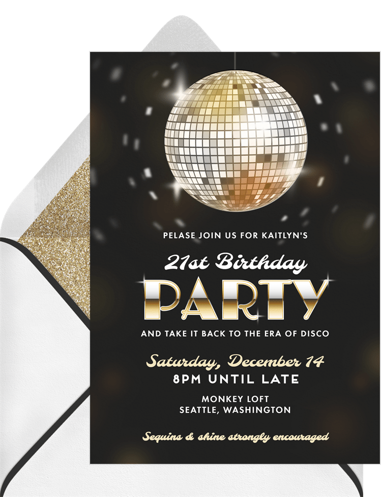 invitations shimmering disco gold adult birthday Designs
