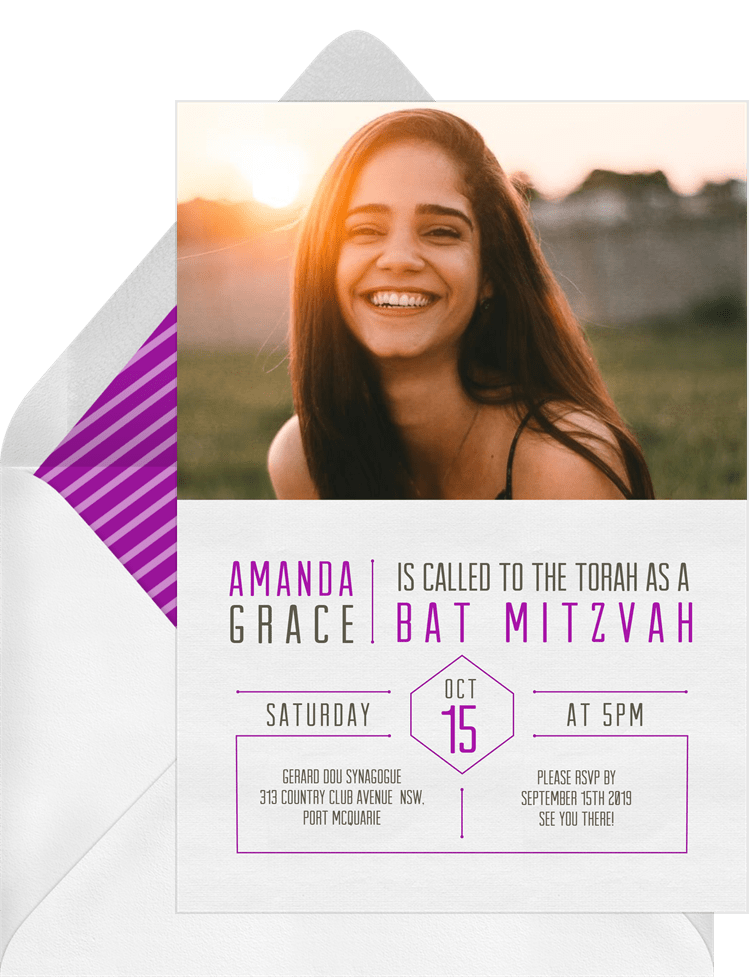 invitations simple grid purple bat mitzvah Designs