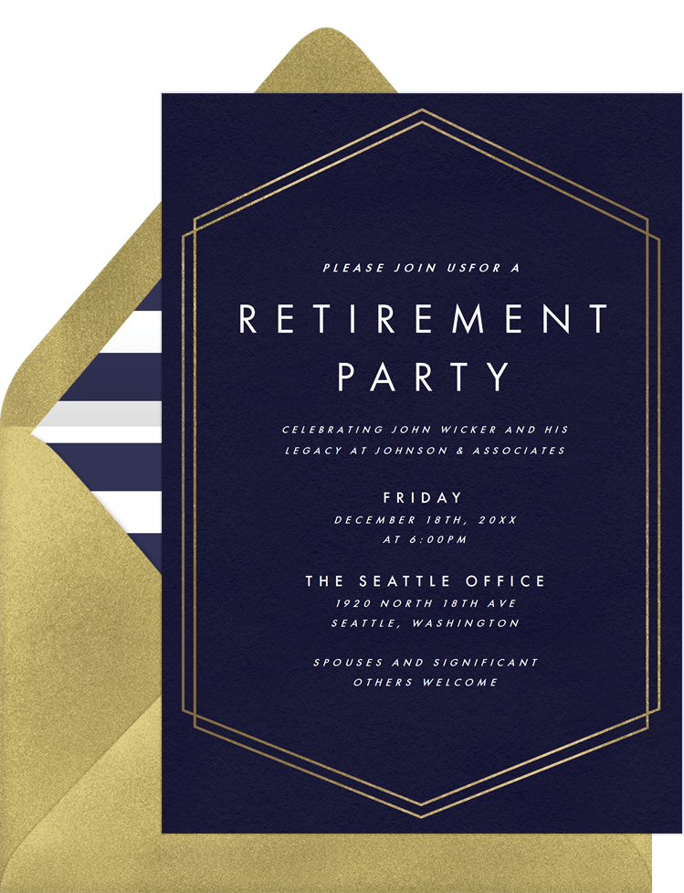 invitations simple hexagon border blue retirement Designs