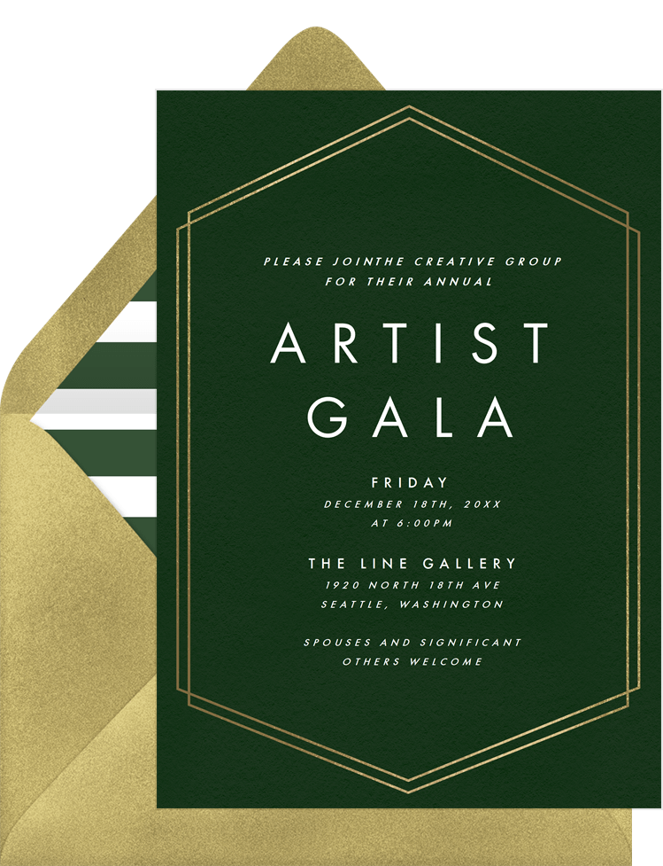 invitations simple hexagon border green gala Designs
