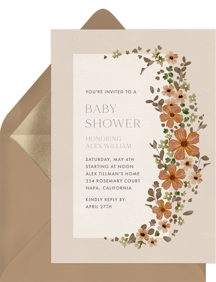 invitations soft flowers brown baby shower Designs