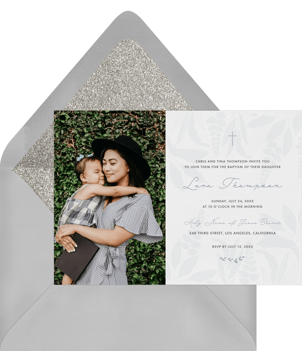 invitations soft leaves blue baptism Designs