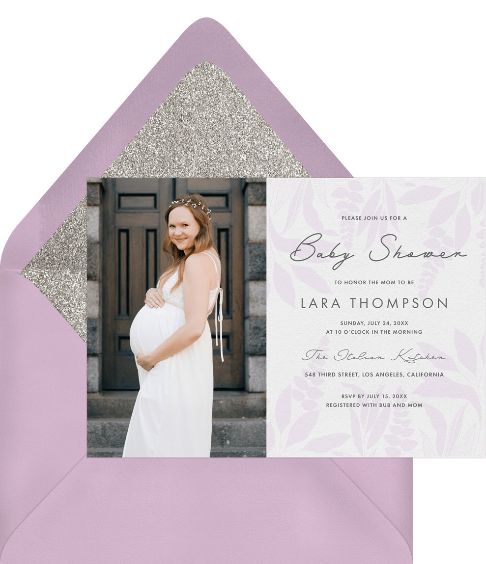 invitations soft leaves purple baby shower Designs
