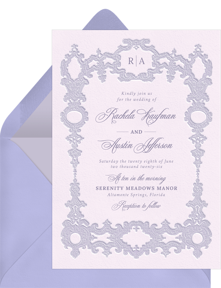 invitations sophisticated frame purple wedding Designs