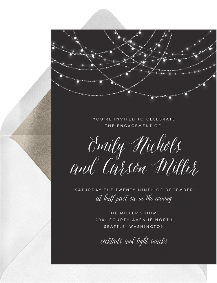 invitations sparkling string lights black engagement party Designs