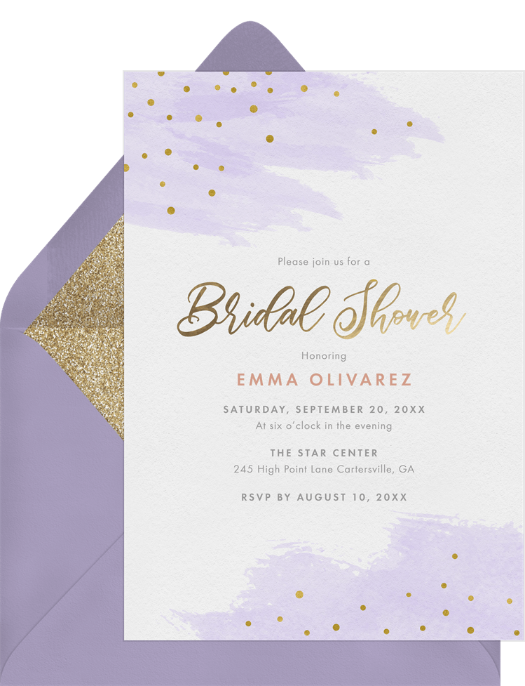 invitations sprinkle of gold purple bridal shower Designs