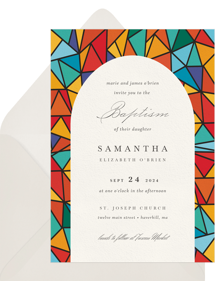 invitations stained glass window red baptism Designs
