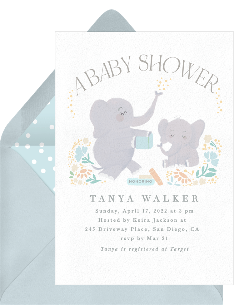 invitations storytime elephants blue baby shower Designs