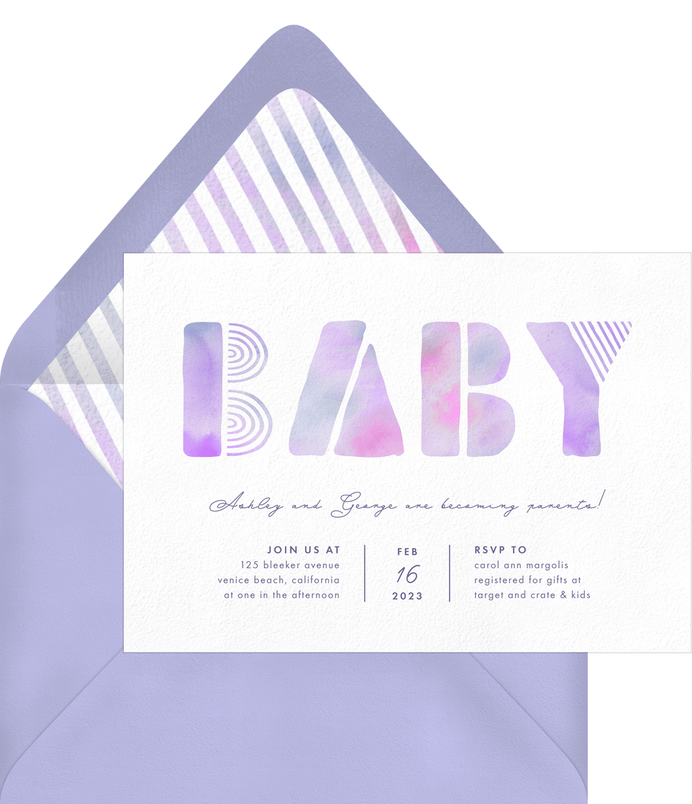 invitations summer baby purple baby shower Designs