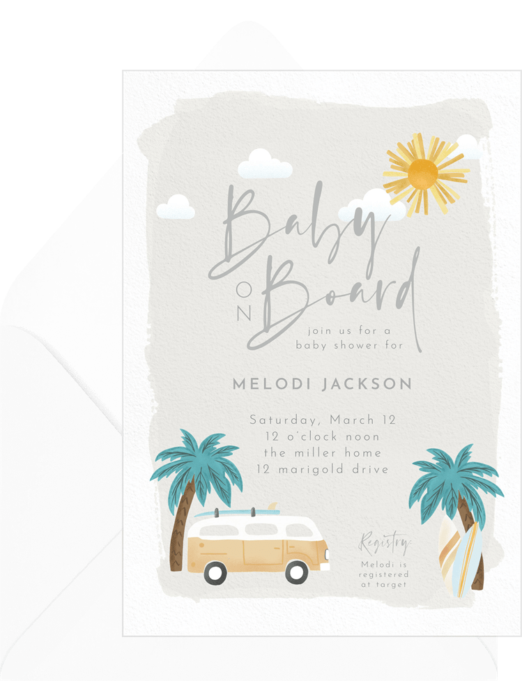 Surfboard Baby Invitation