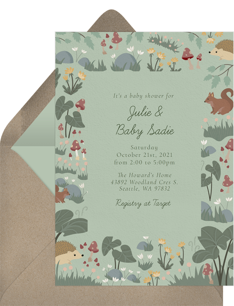 invitations sweet woodland theme green baby shower Designs