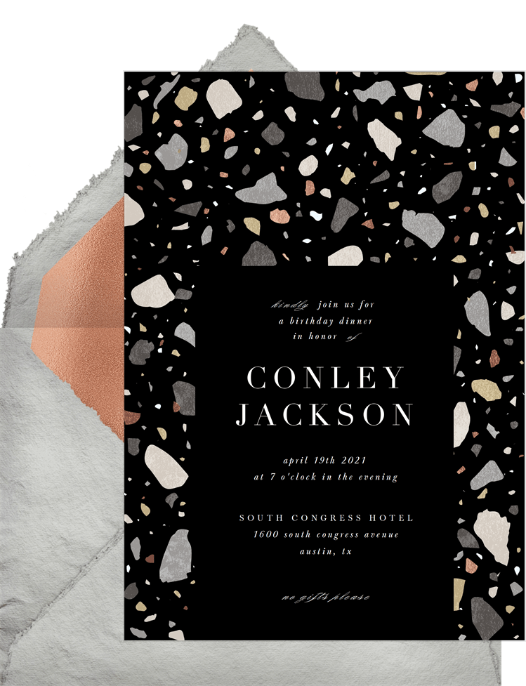 invitations terrazzo black adult birthday Designs