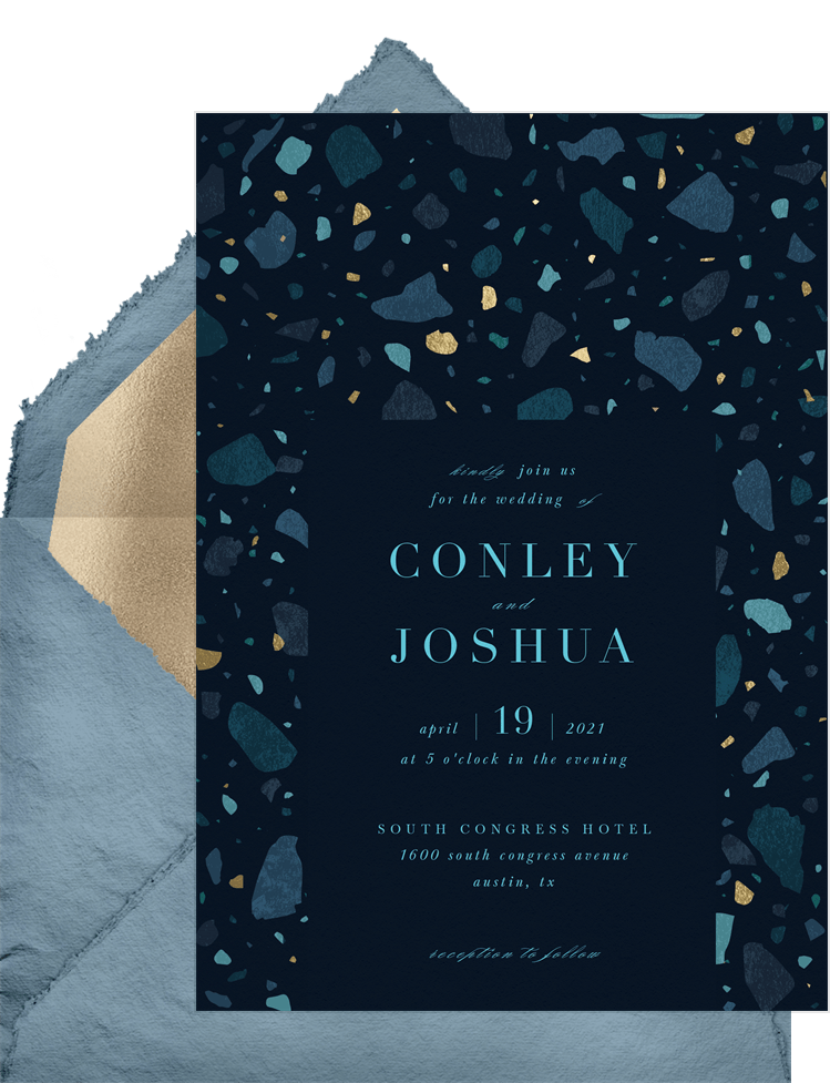 invitations terrazzo blue wedding Designs