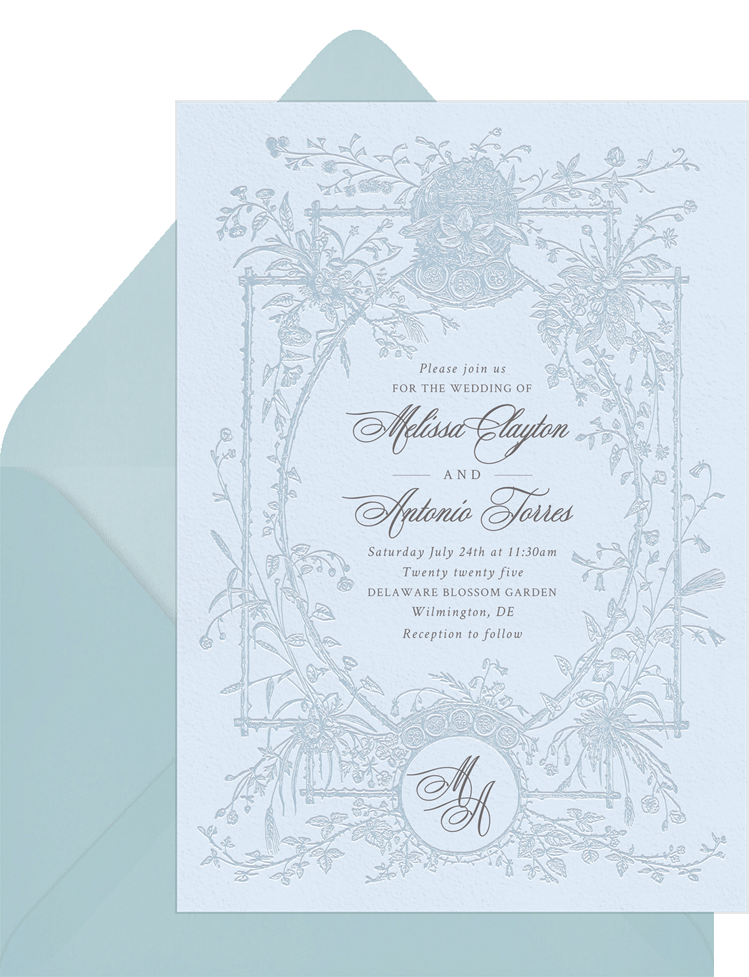 invitations timeless botanical frame blue wedding Designs