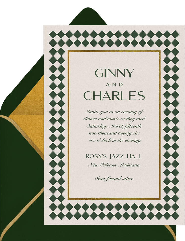 invitations timeless checkerboard green wedding Designs