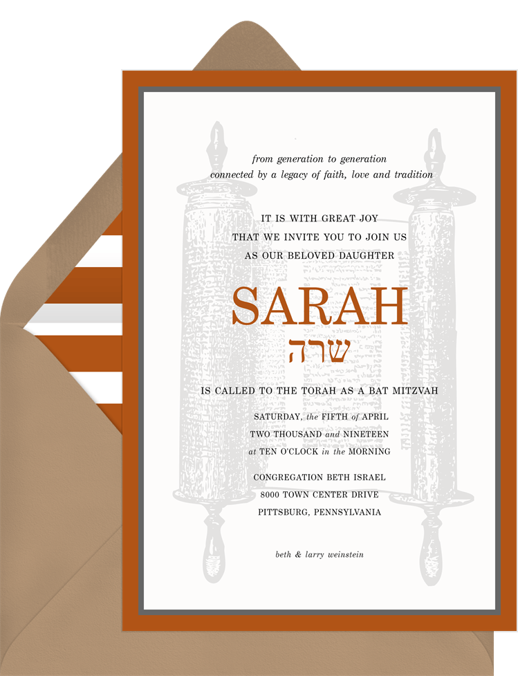 invitations torah scroll orange bat mitzvah Designs