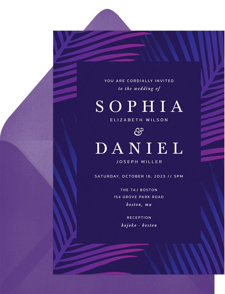 invitations tropical gradient purple wedding Designs