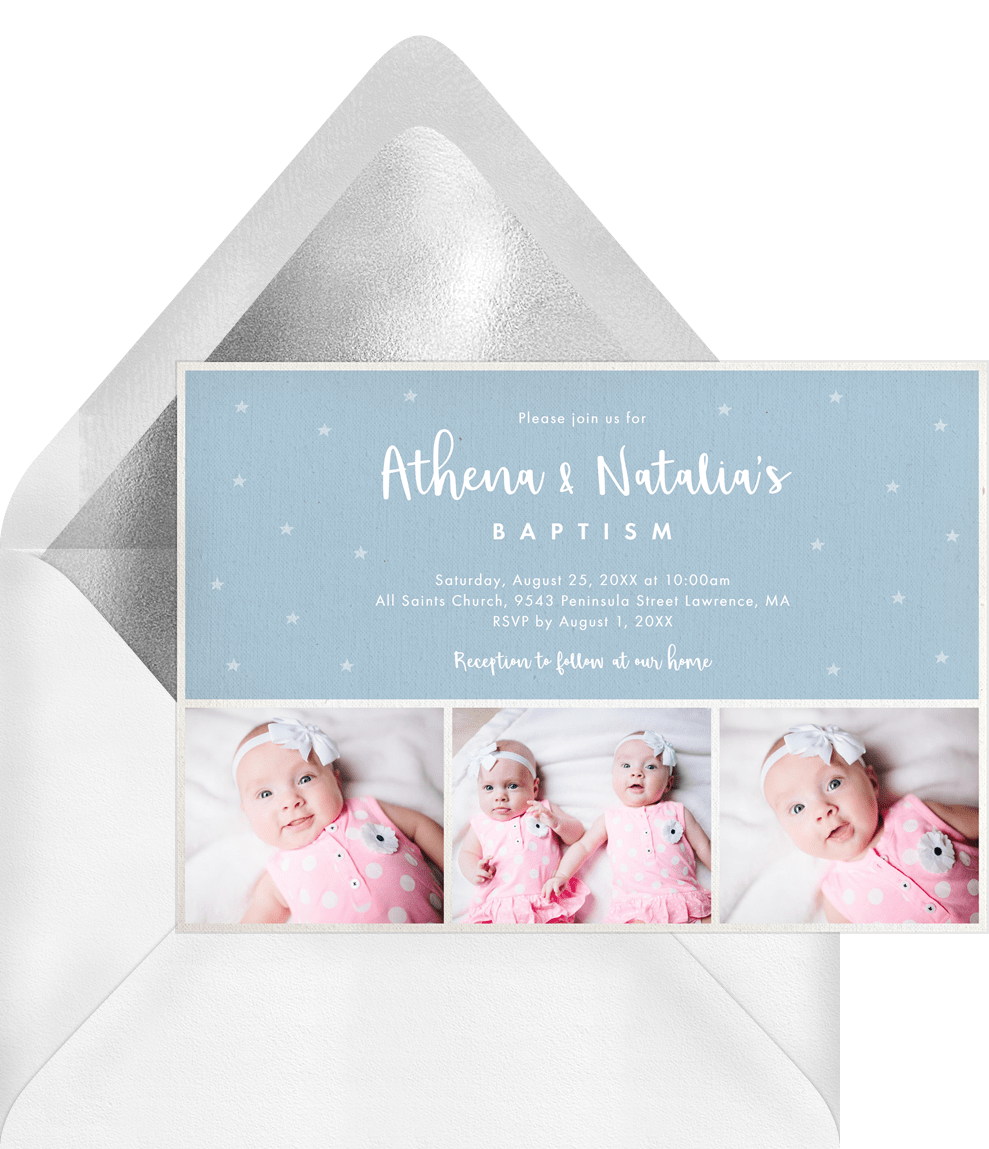 invitations twinkly little stars blue baptism Designs