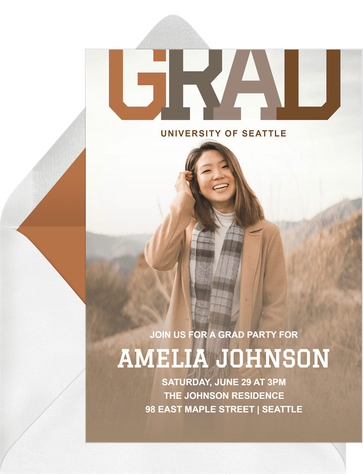 invitations varsity flair brown graduation Designs
