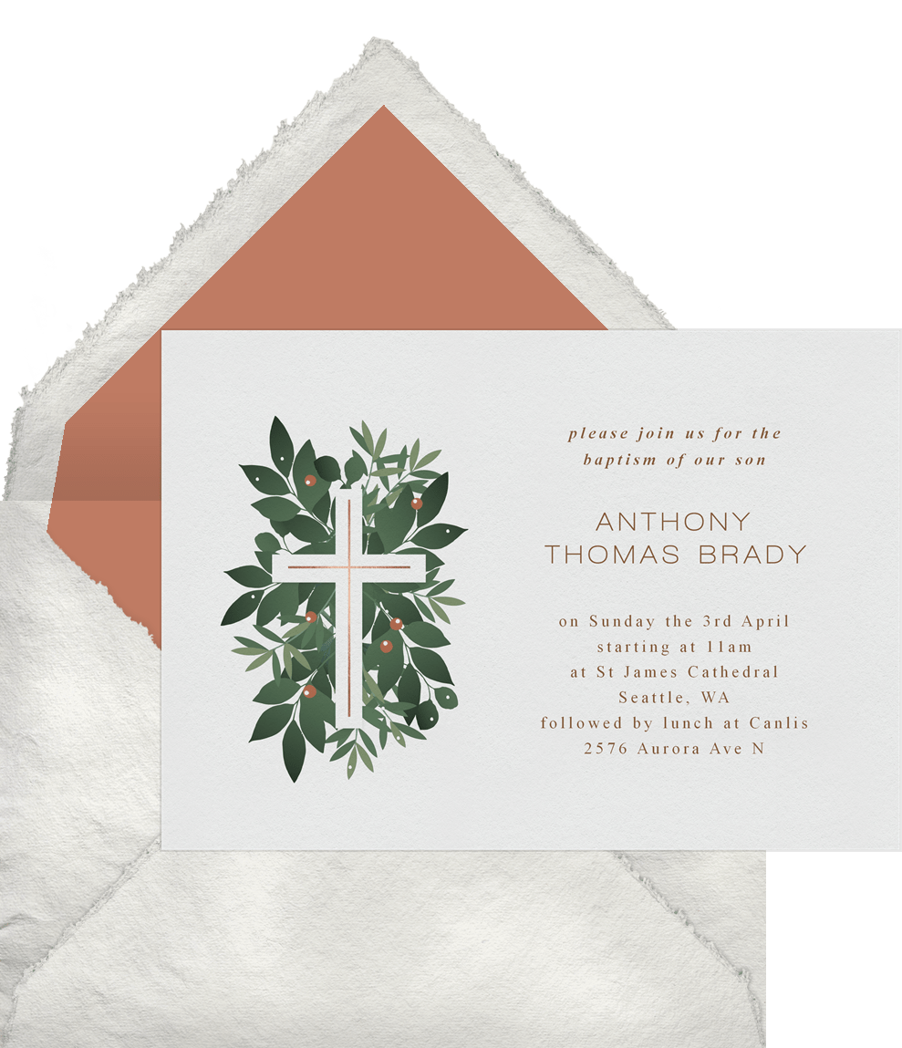 invitations verdant cross white baptism Designs