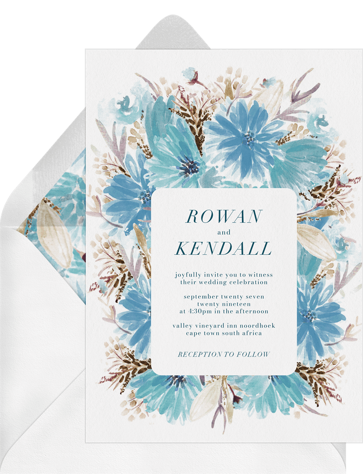 invitations vibrant boho bouquet blue wedding Designs