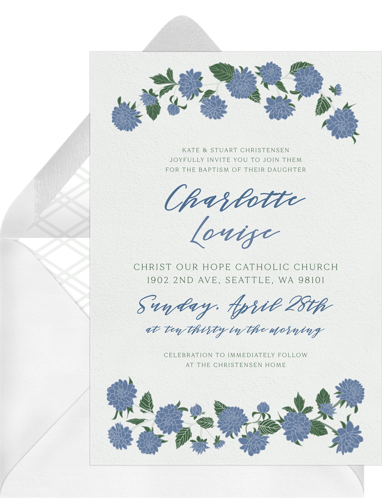 invitations vintage dahlias blue baptism Designs