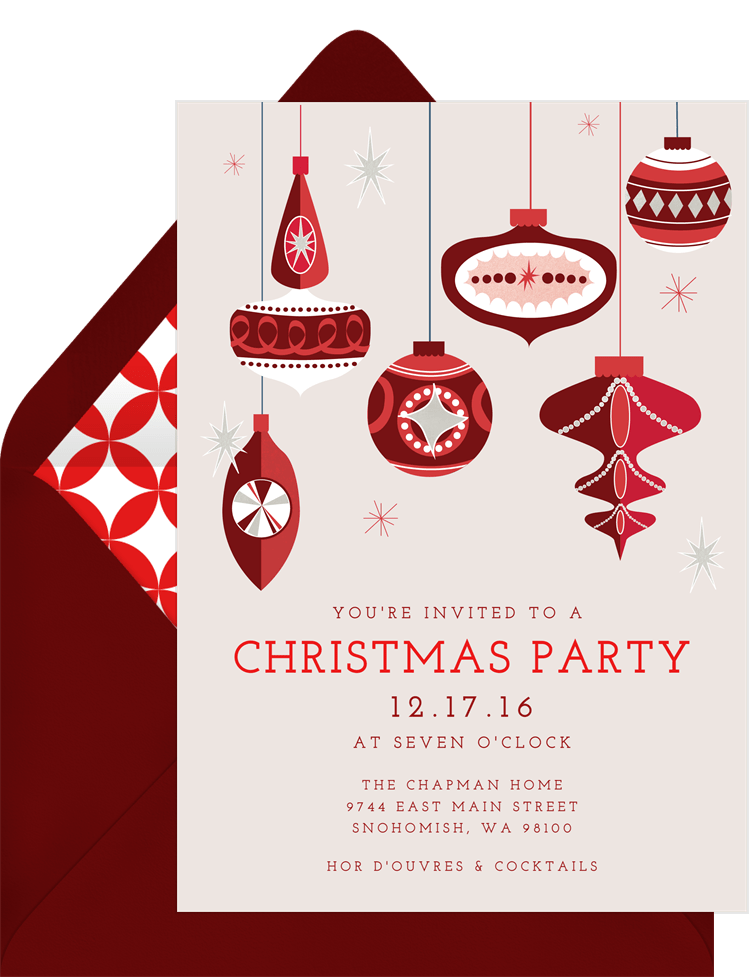 invitations vintage ornaments red christmas party Designs