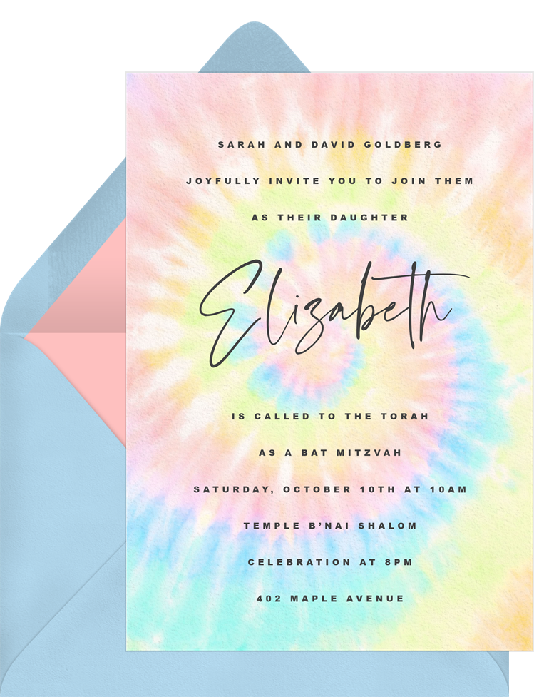 invitations vintage tie dye blue bat mitzvah Designs