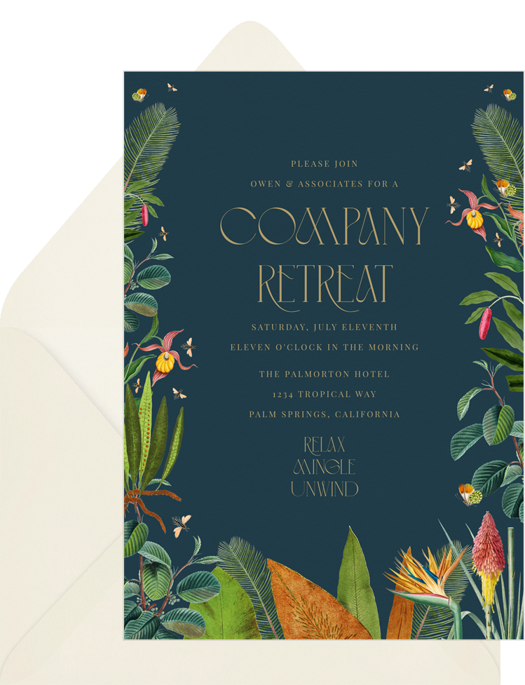 invitations vintage tropics romance blue company retreat Designs
