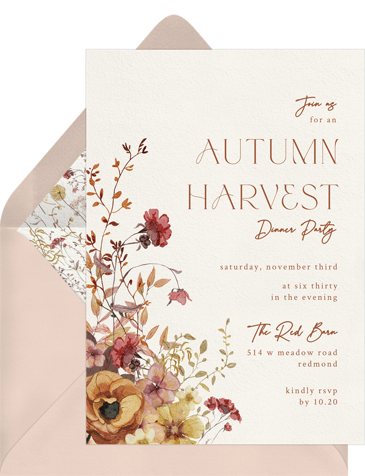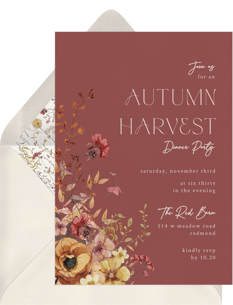 invitations warm florals red fall party Designs