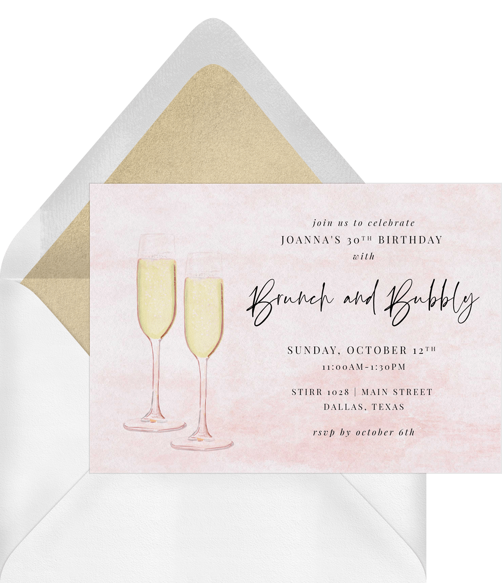 invitations watercolor brunch and bubbly pink adult birthday Designs