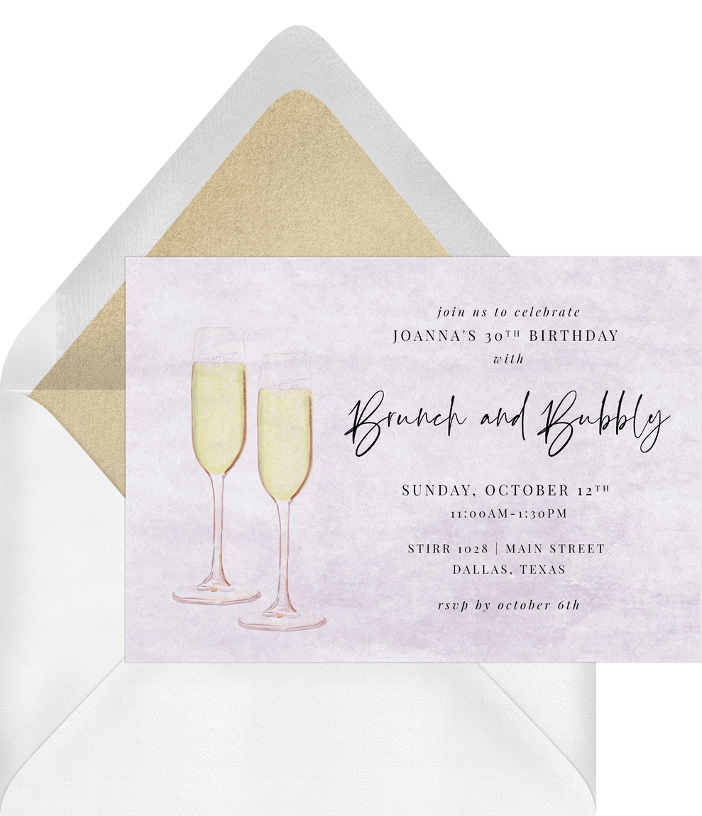 invitations watercolor brunch and bubbly purple adult birthday Designs