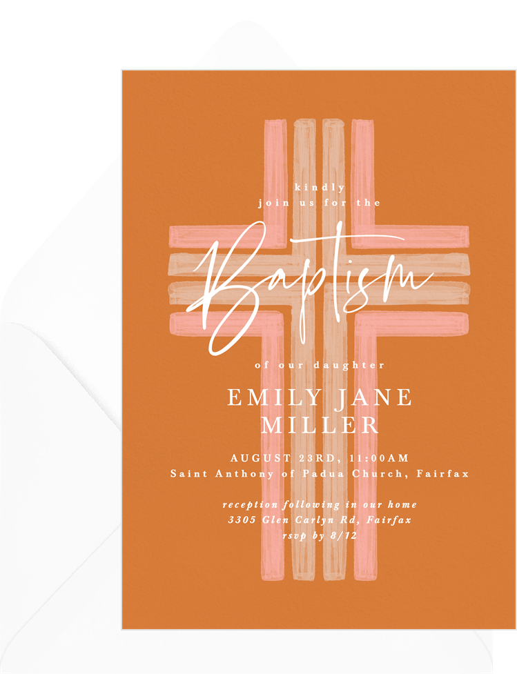 invitations watercolor cross orange baptism Designs
