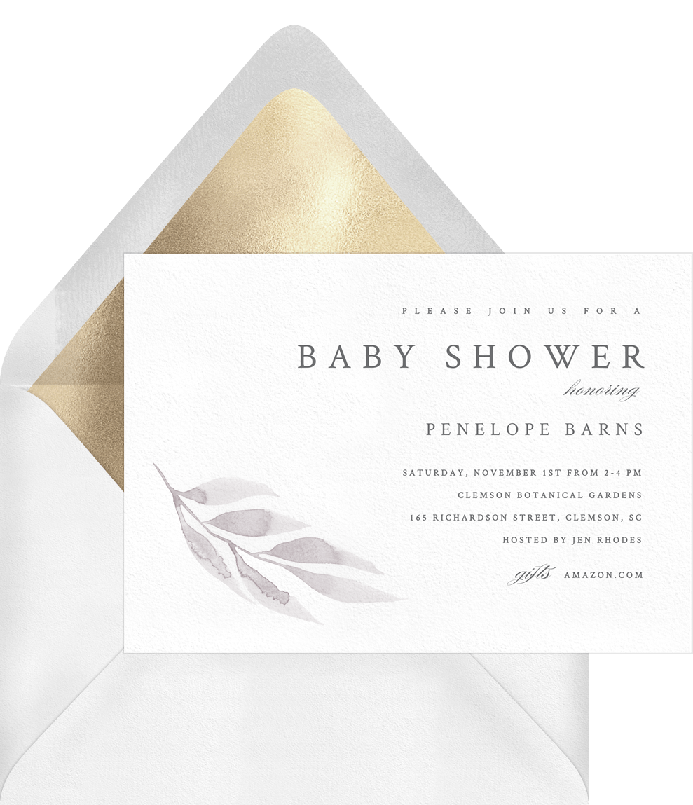 invitations watercolor leaf purple baby shower Designs