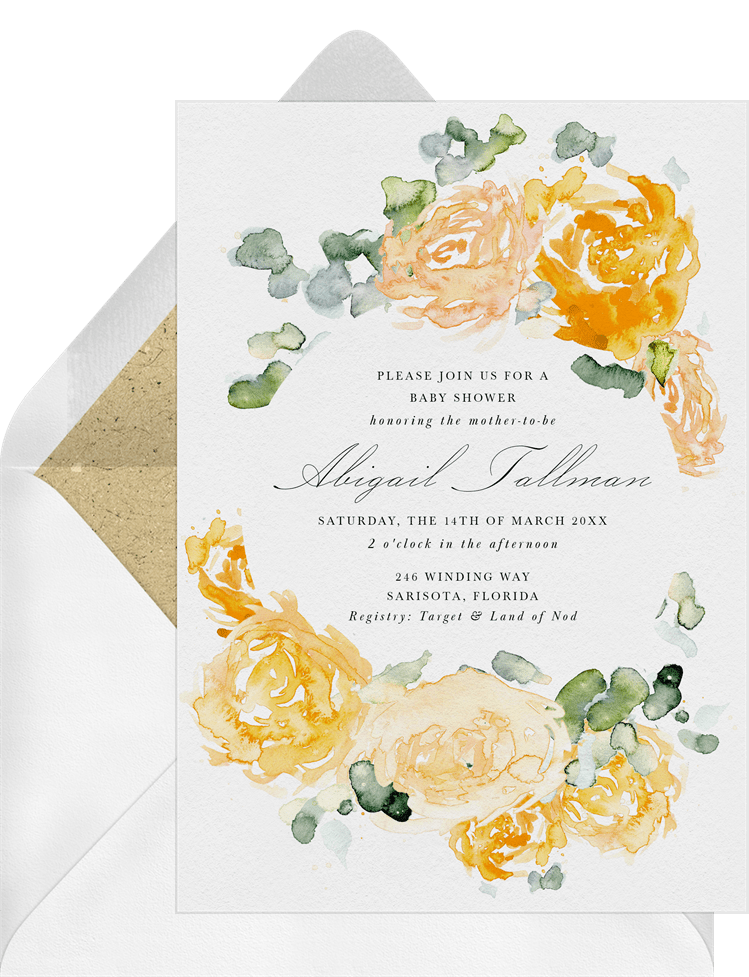 invitations watercolor peonies orange baby shower Designs