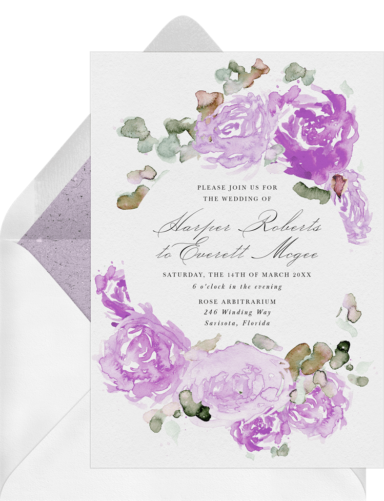 invitations watercolor peonies purple wedding Designs