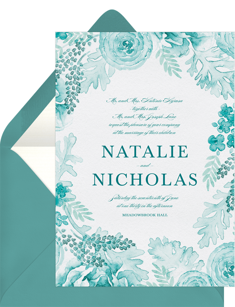 invitations watercolor romance green wedding Designs