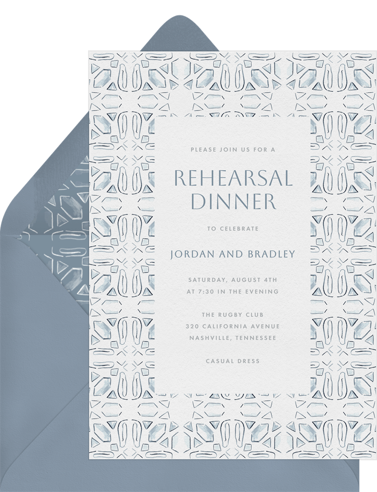 invitations watercolor tiles blue rehearsal dinner Designs