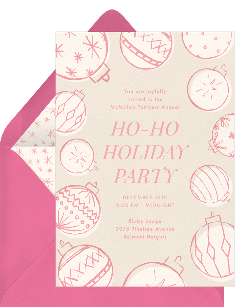 invitations whimsical vintage ornaments pink business holiday party Designs