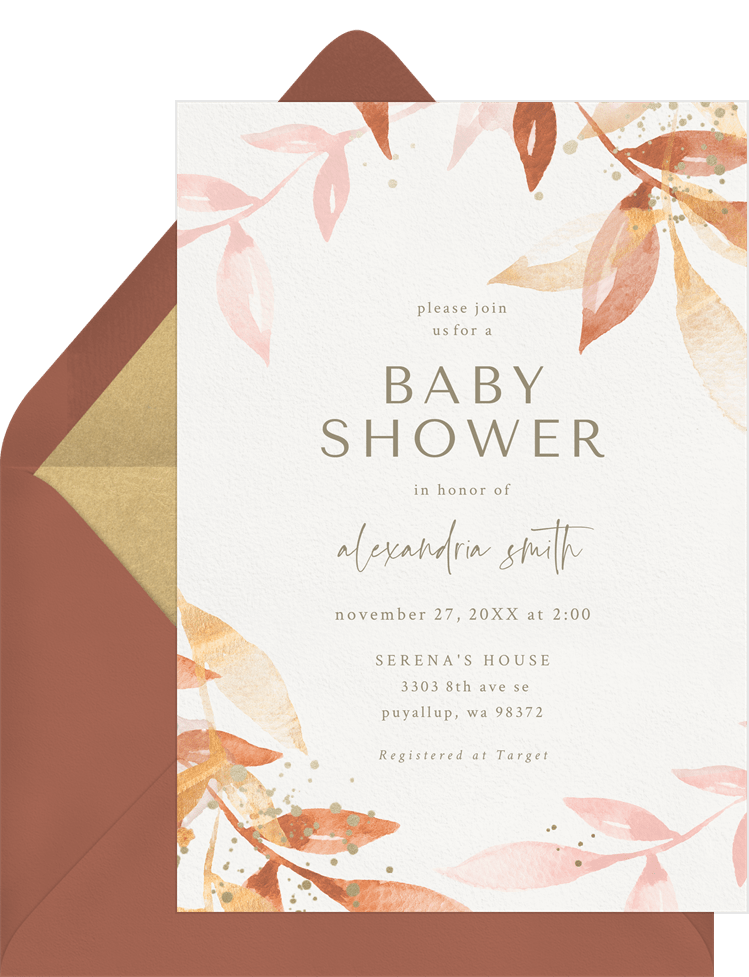 invitations whimsical watercolor orange baby shower Designs