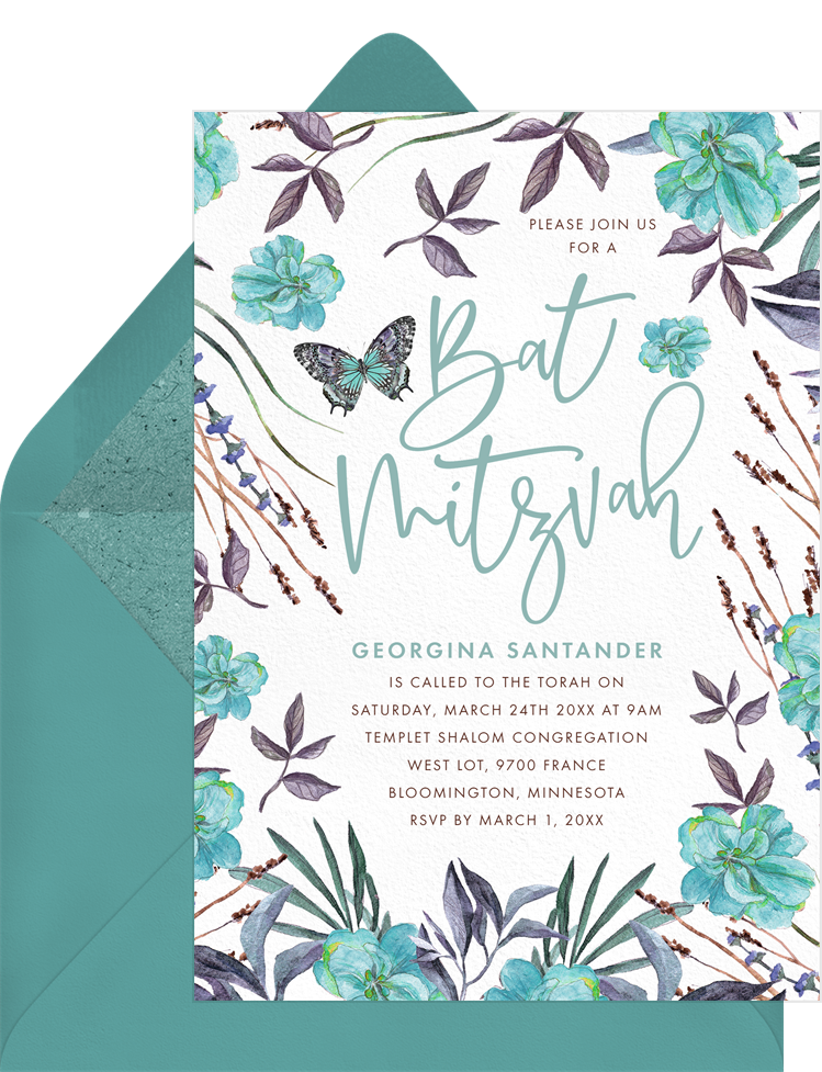 invitations wild garden green bat mitzvah Designs